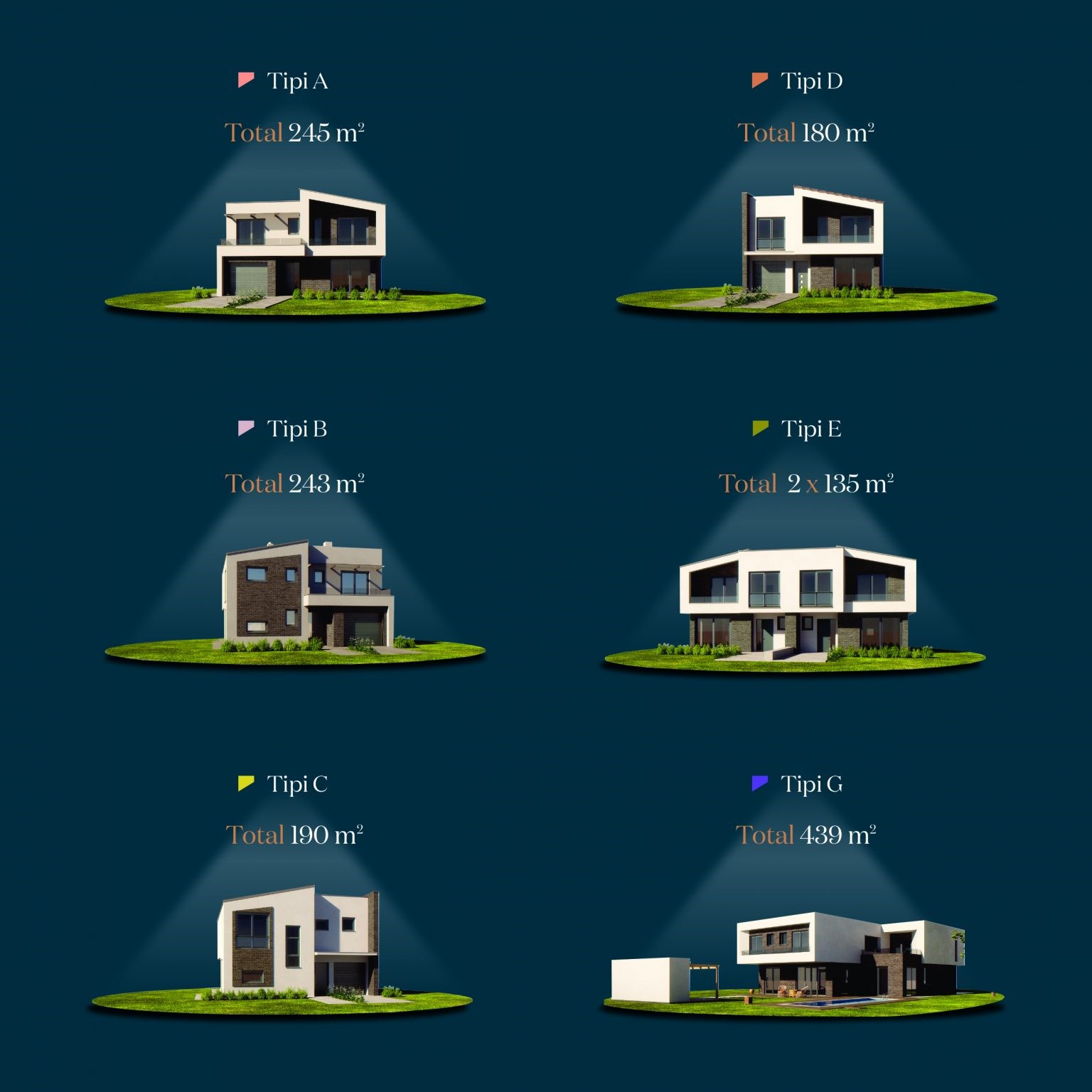 E projektuar ne 6 tipe te ndryshme të shtëpive të cilat i përshtaten zgjedhjes dhe nevojave te çdo njërit, e rrethuar me hapësira gjelbëruese dhe rekreative, me pozicion ideal për të kaluar kohën me më të dashurit tuaj.